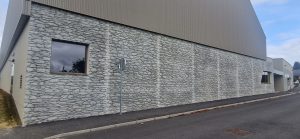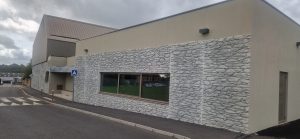 En avril 2021, les travaux pour la construction de la salle omnisports ont démarré. Ce projet possède une façade d’éléments préfabriqués en béton matricé moellon pierre.